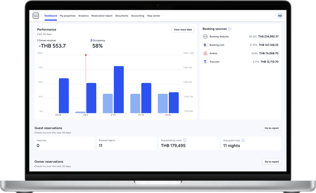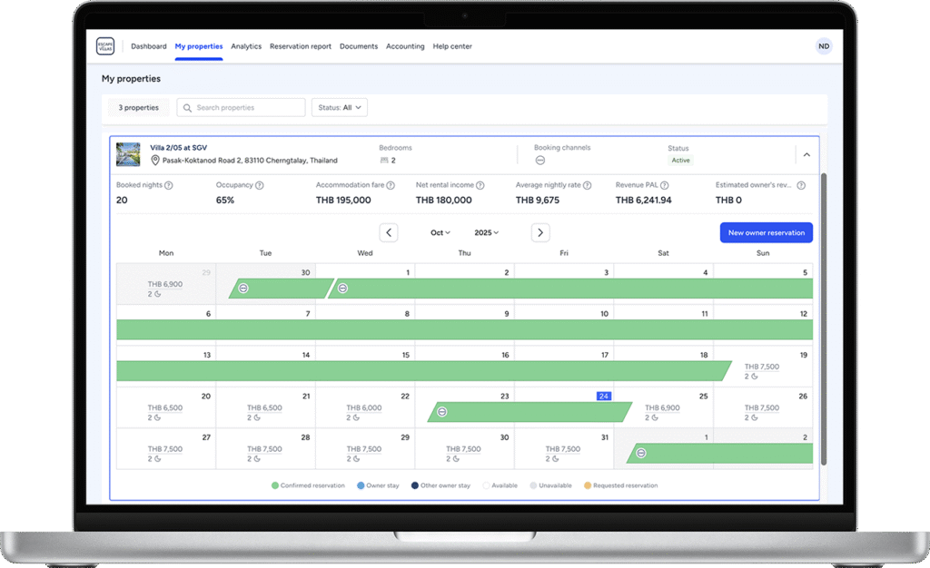 Owners benefit from full transparency through our digital management system, providing real-time insights on bookings, expenses, and property status. With consistent quality, strong marketing, and a spotless reputation, every villa under our care stays in perfect condition year-round and performs at its full potential.