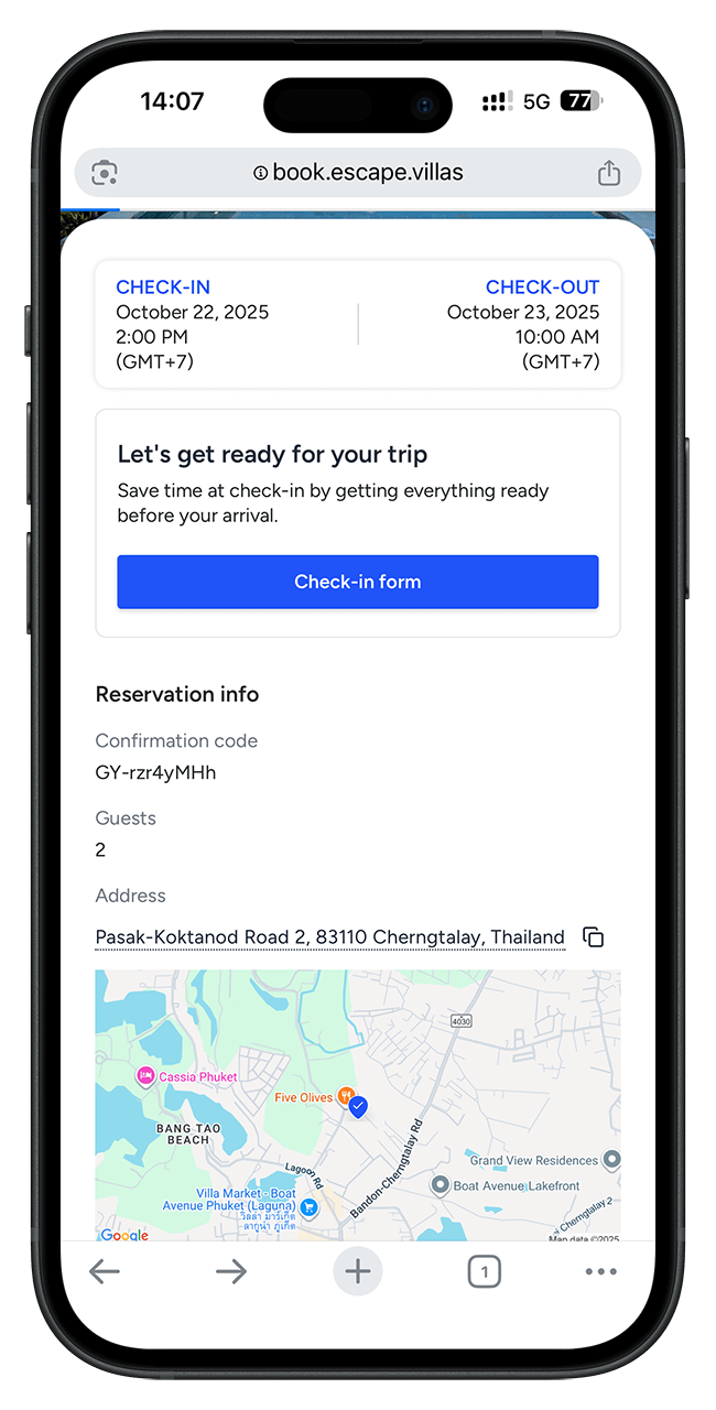 Our dedicated service team helps you relax, explore, and experience Phuket to the fullest — from personalised recommendations to island adventures. Through our Guest App, guests enjoy instant access to property details, local tips, and direct chat with our concierge team, making every stay truly effortless.